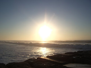 Fixo o horizonte,entre o céu e o mar,e vejo o sol afogar-se devagar...